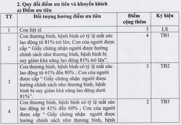 Cách quy đổi điểm vào trường dựa vào bảng sau: