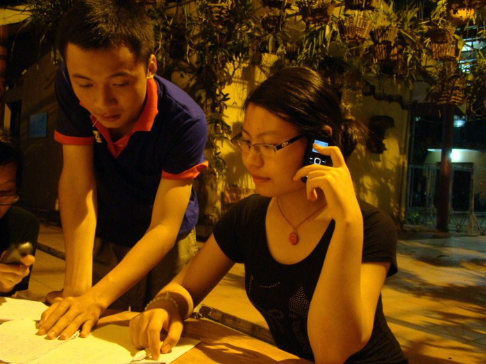 | 22h, các sinh viên tình nguyện vẫn hăng say làm việc, sắp xếp tình nguyện viên để đưa các sĩ tử đi làm thủ tục dự thi đúng giờ. |