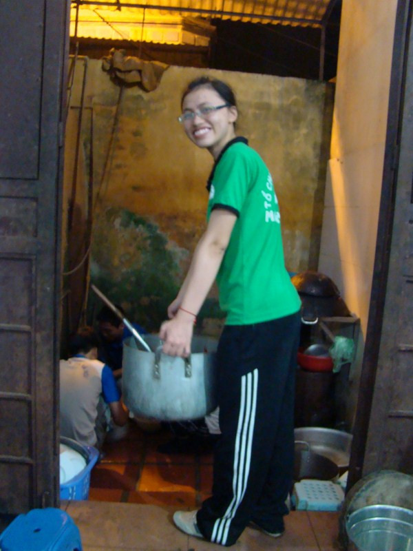 | Đội sinh viên tình nguyện cũng ở lại chùa để kịp sáng 8/7 đưa các thí sinh đi làm thủ tục dự thi. |