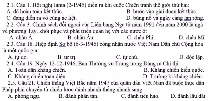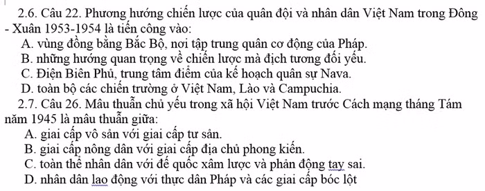 Có thể dẫn ra đây một câu trong đề thi một Lịch sử như sau: