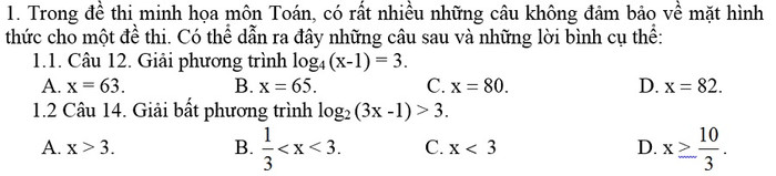 Tất nhiên đây chỉ là những đề thi minh họa, nhưng cho dù thế cũng vẫn phải thể hiện cho đúng chuẩn mực về mặt khoa học để tránh làm học sinh lúng túng và giúp định hướng kế hoạch học tập.