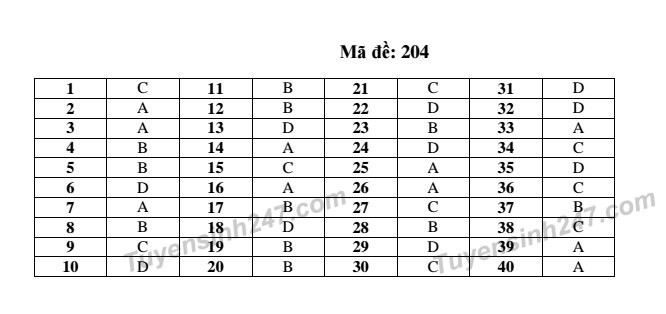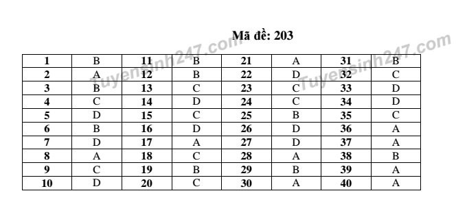 Các môn thi thành phần trong mỗi bài thi tổ hợp có cùng một mã đề thi, thí sinh ghi mã đề thi này trên phiếu trả lời trắc nghiệm để theo dõi.