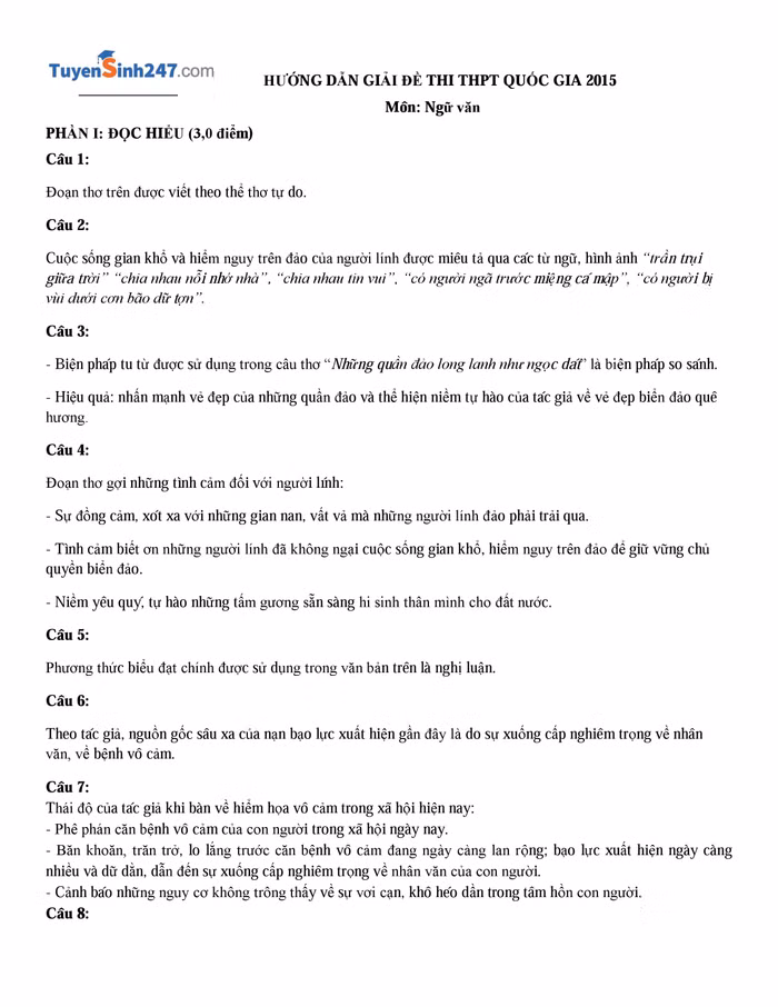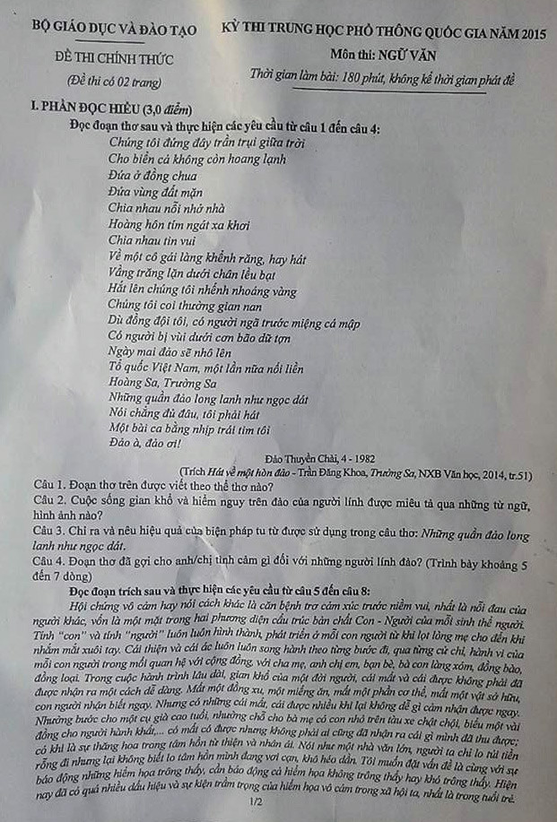 Dưới đây là đề và lời giải môn Ngữ văn.