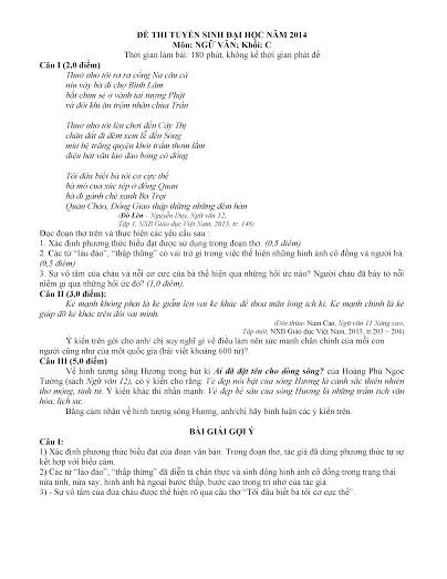 Đề thi chính thức và gợi ý đáp án môn Ngữ văn :