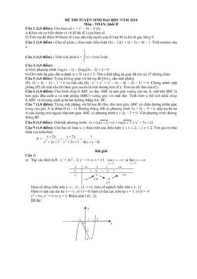 Đề thi chính thức và gọi ý lời giải môn tiếng Toán khối D: