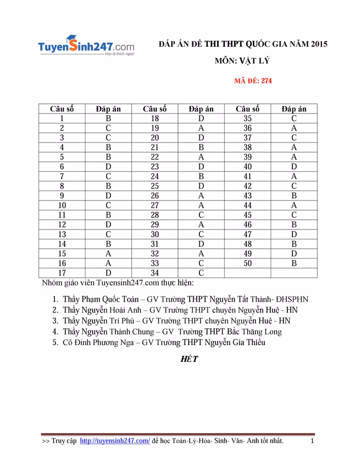 Nhằm đáp ứng nhu cầu của độc giả cũng như thí sinh trong Kỳ thi THPT Quốc gia năm 2015, Báo điện tử Giáo dục Việt Nam phối hợp với Tuyển sinh 247.com sẽ cập nhật liên tục và nhanh nhất lời giải, đáp án các môn thi trong Kỳ thi THPT quốc gia.