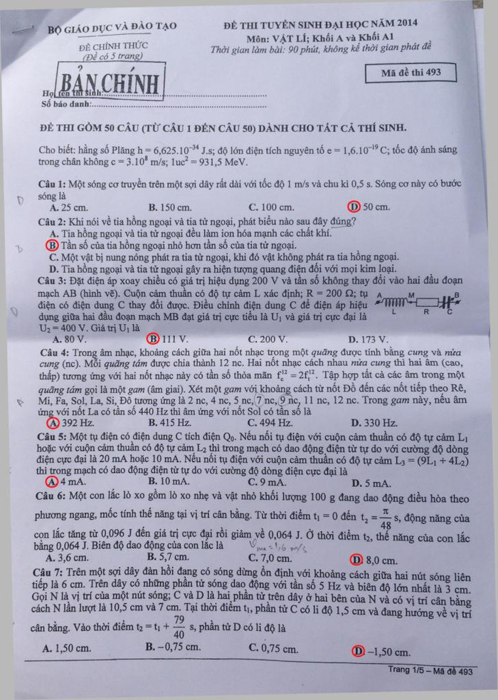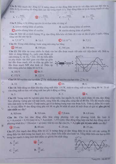 Đề thi chính thức và gợi ý đáp án môn Vật lý: