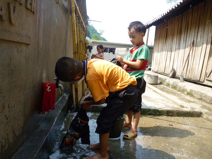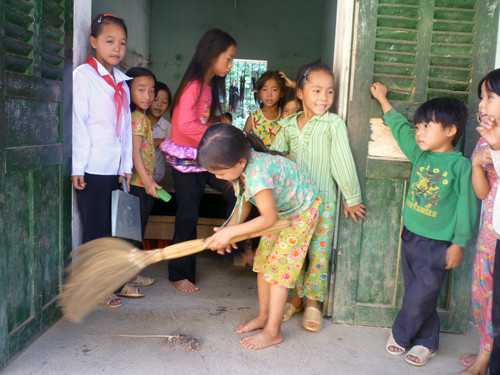 | Dù còn rất nhỏ nhưng những em học sinh dân tộc nơi đây đã sớm làm quen với cuộc sống tự lập |