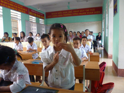 | Tại các lớp Tiếng Việt 1 công nghệ giáo dục, mọi thao tác như được lập trình sẵn và tuần tự. Học sinh luôn chân, luôn tay làm việc theo hệ thống ký hiệu của giáo viên. |