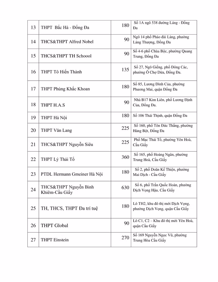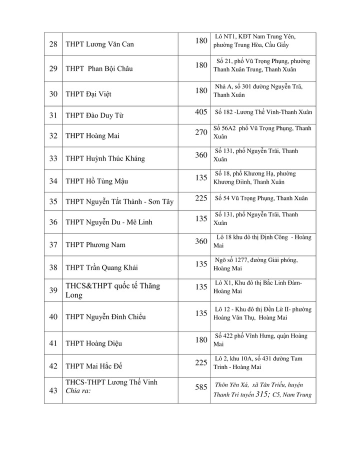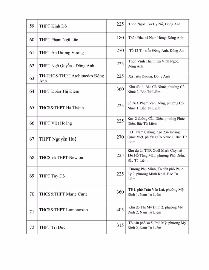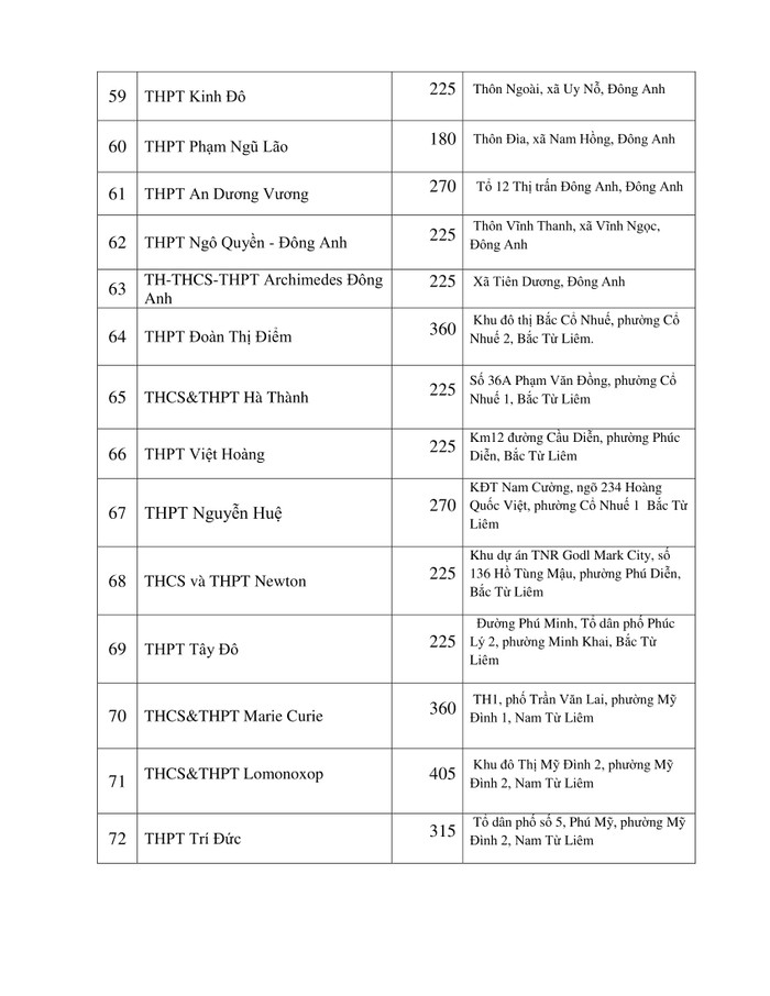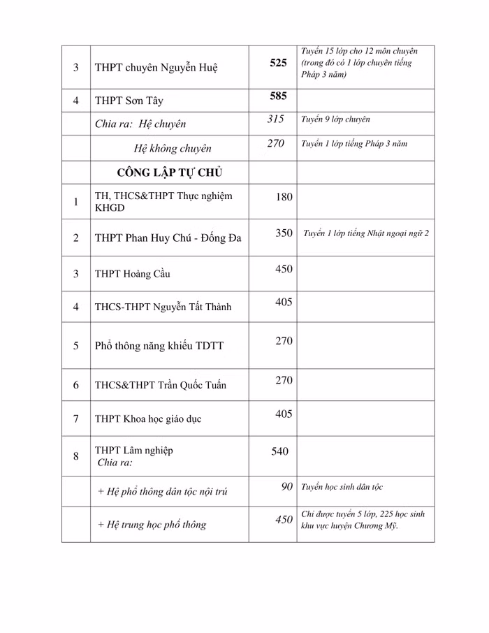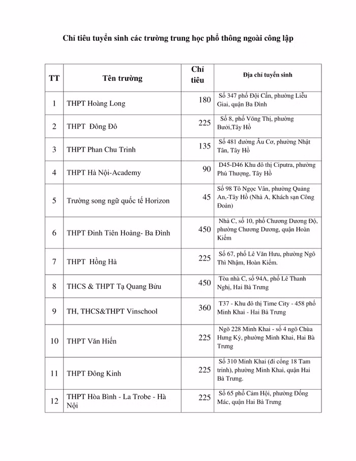 Chỉ tiêu tuyển sinh vào các trường trung học phổ thông ngoài công lập, xem: