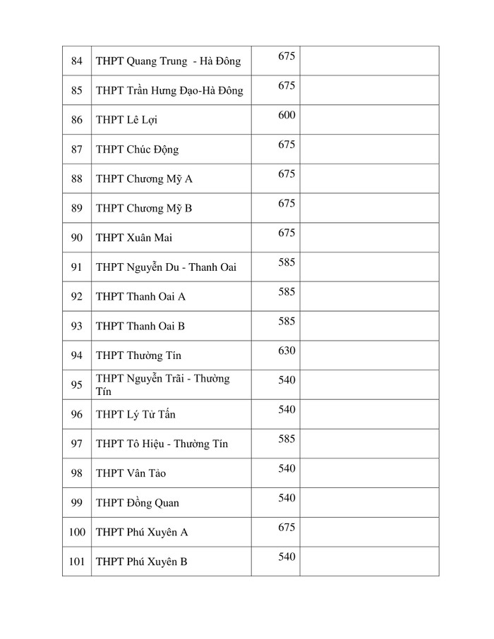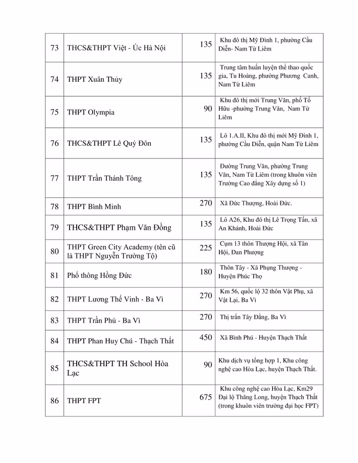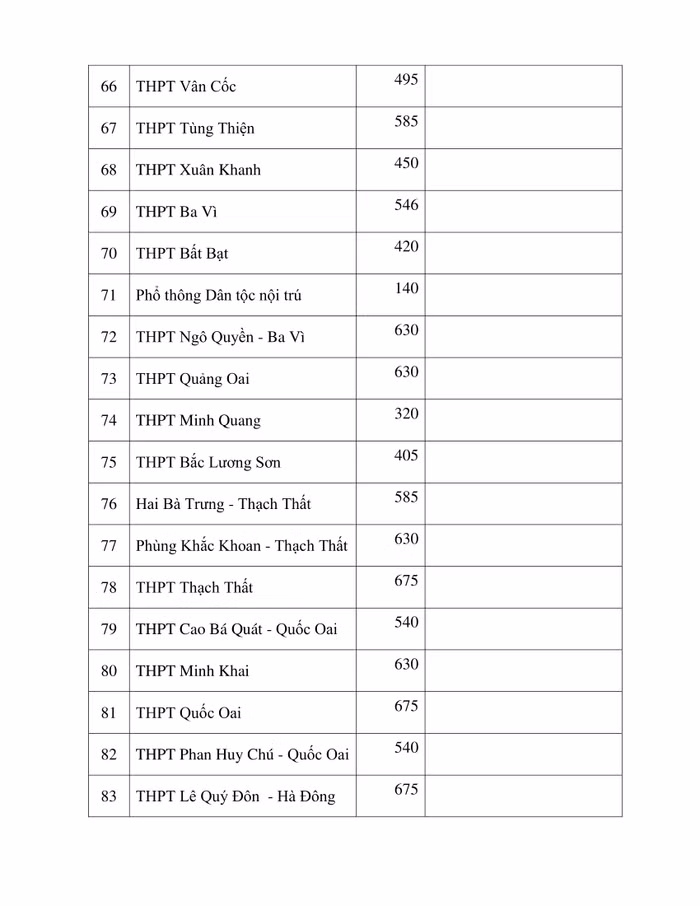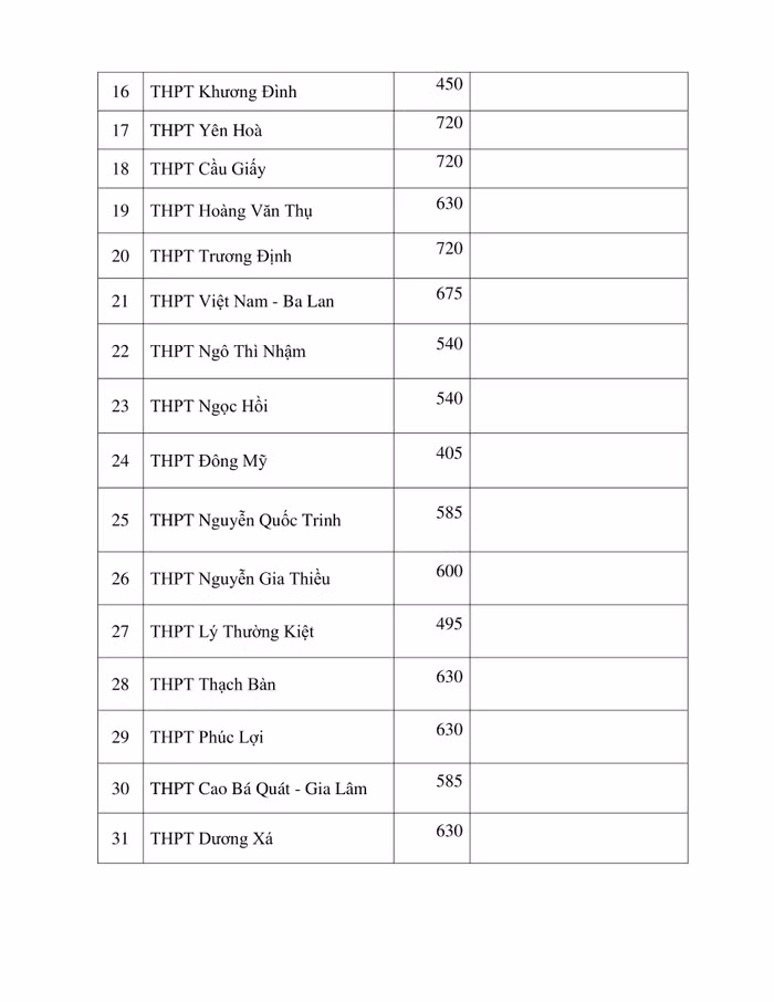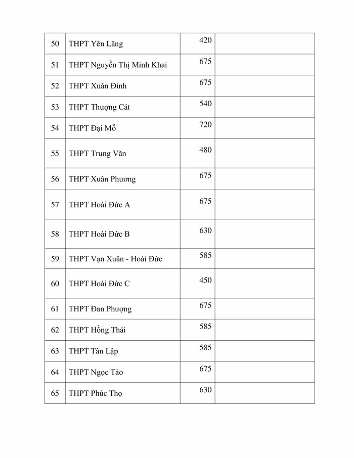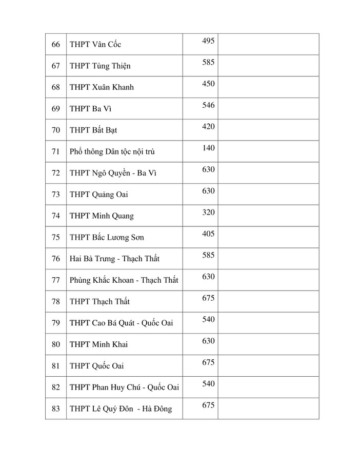 Chỉ tiêu tuyển sinh vào các trường trung học phổ thông ngoài công lập, xem: