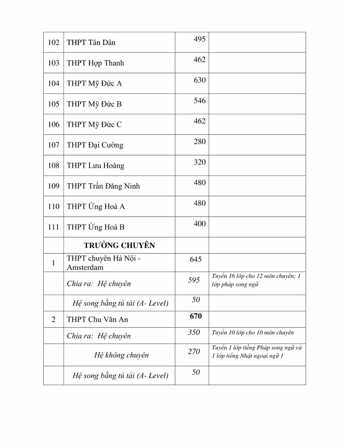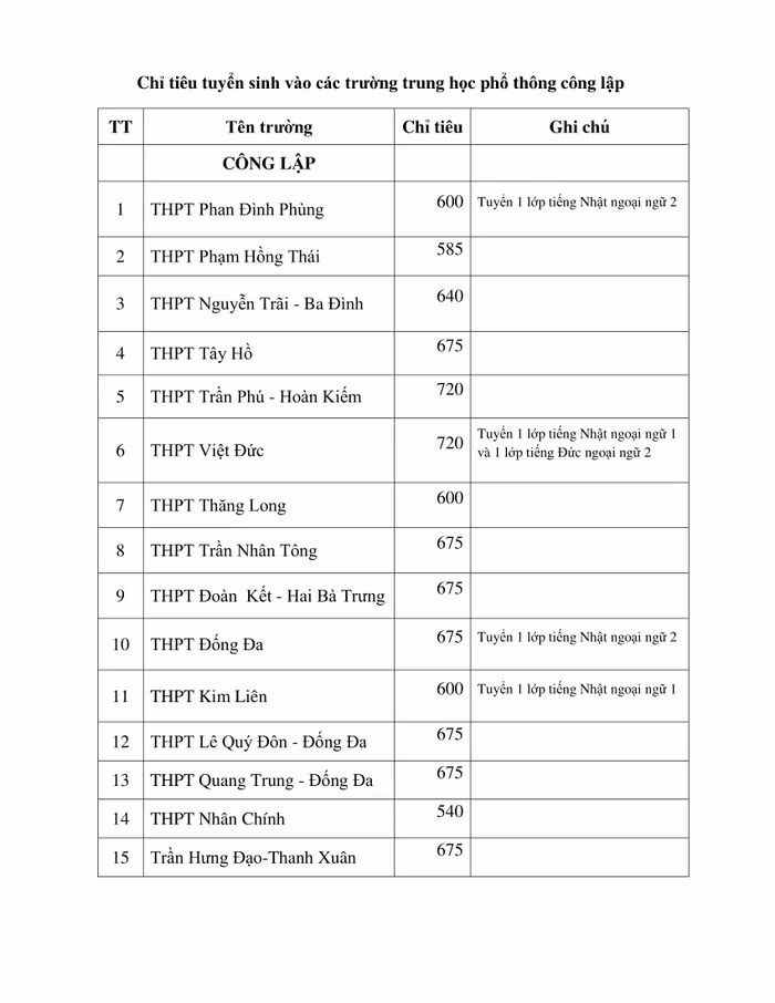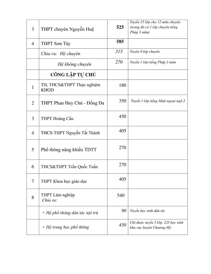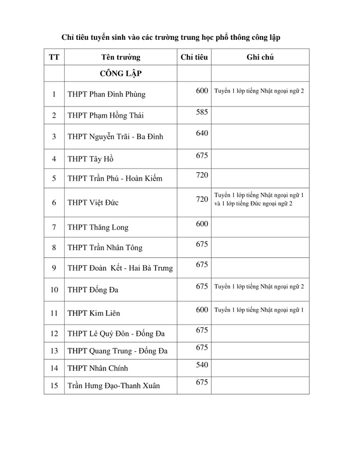 Theo đó, chỉ tiêu tuyển sinh vào các trường trung học phổ thông công lập, xem: