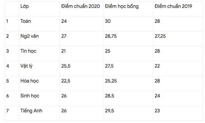 Điểm chuẩn hệ chuyên là tổng điểm của các môn: Ngữ văn, toán, tiếng Anh và môn chuyên (môn chuyên tính hệ số 2).