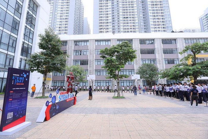 Ngay từ sáng sớm, đông đảo học sinh, phụ huynh và các chuyên gia về công nghệ đã đổ về Trường trung học cơ sở Vinschool tham dự ngày hội STEME.
