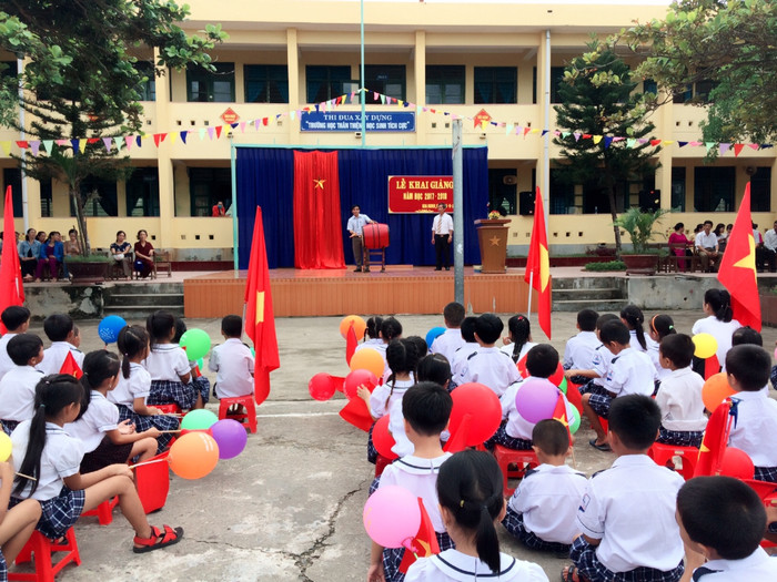 | Lễ khai giảng của các em học sinh ở bản Troi, xã Thượng Trạch, Bố Trạch, Quảng Bình. |