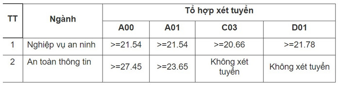 Thí sinh nộp hồ sơ xét tuyển bổ sung cũng phải đạt ngưỡng chất lượng đầu vào theo quy định của Bộ Công an. Theo đó, mỗi môn thuộc tổ hợp phải đạt từ 5 trở lên theo thang điểm 10; tổng điểm thi, điểm ưu tiên khu vực và đối tượng đạt từ 17,75 trở lên.
