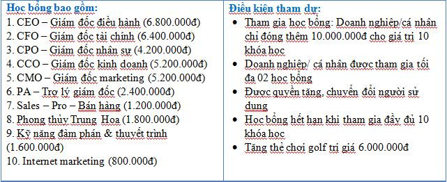 Với học bổng hấp dẫn này, bạn sẽ được tham dự tất cả các khóa học của Học viện doanh nhân GED, chỉ với 10 triệu đồng cho tổng giá trị lên tới 35.6 triệu đồng