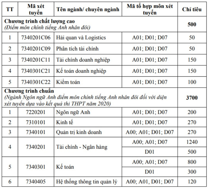 Theo đó, năm 2020, Học viện Tài chính tuyển 4.200 chỉ tiêu. Học viện sẽ tuyển sinh theo 5 phương thức: