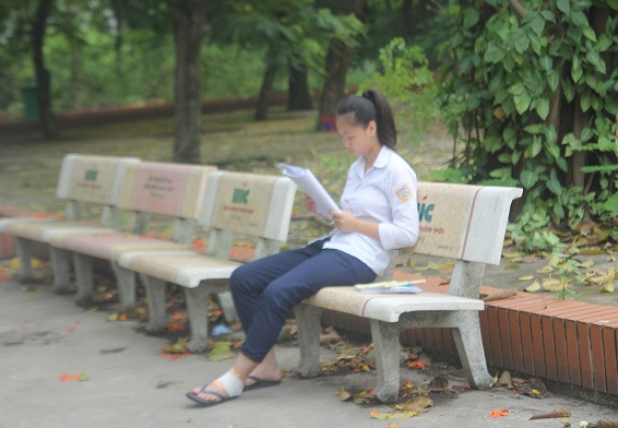 | Gương mặt lo lắng của thí sinh trước khi vào thi môn đầu tiên |