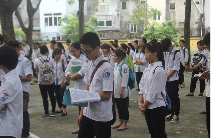 | Học sinh Hà Nội dự thi vào lớp 10 năm học 2016-2017 tại điểm trường THPT Trần Hưng Đạo, Thanh Xuân, Hà Nội. |