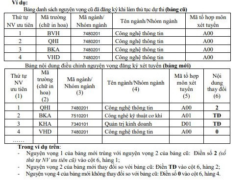 Nếu không thay đổi thứ tự nguyện vọng ưu tiên và các nội dung đã đăng ký thì thí sinh ghi số 0 tại cột (6) cùng hàng;