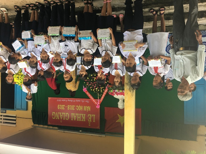 | Hiệu trưởng thay mặt nhà trường tặng Bảo hiểm y tế học sinh khó khăn |