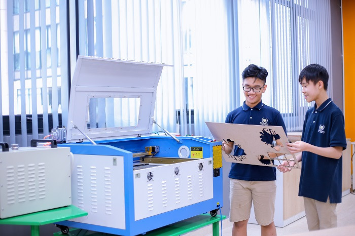 Từ những thiết bị, dụng cụ nhỏ nhất như búa, kìm, kéo, motor, pin, ốc vít…… cho đến các máy móc công nghệ cao như máy in 3D, máy cắt laser, máy điêu khắc CNC để học sinh có thể in, chế tạo những sản phẩm do chính mình thiết kế.