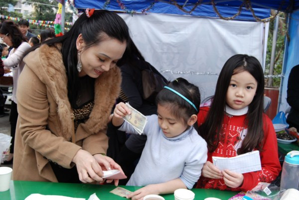 | Gian hàng lớp 2A1 (cô giáo Cát Thị Lợi, giáo viên dạy giỏi cấp Thành phố chủ nhiệm) nổi bật tại Hội chợ Xuân. Đây là lớp tiếng Anh Quốc tế thuộc Trường Tiểu học Ngôi Sao. |