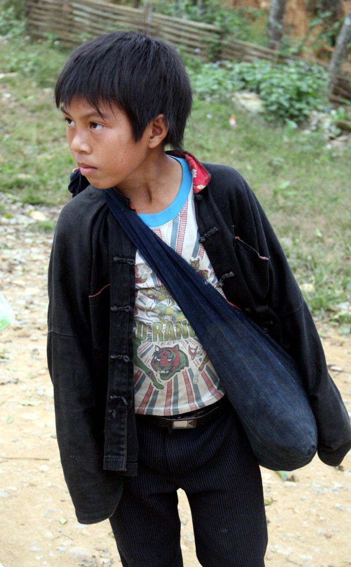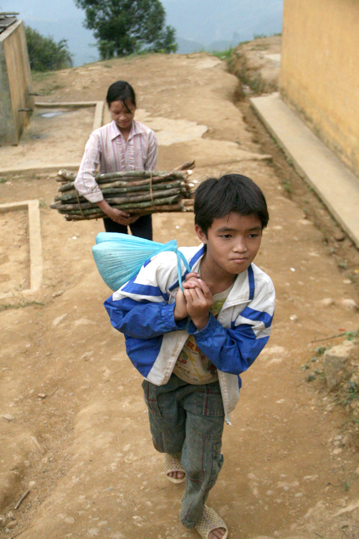 | Với thân hình nhỏ bé, nhưng các học sinh nội trú vùng cao phải cõng ít nhất 3kg gạo nộp cho trường cho một tuần ăn. Các em phải đi rất nhiều cây số mang gạo, thức ăn từ nhà tới trường. |