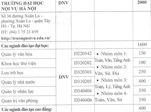 Thông tin cụ thể về ngành học và tổ hợp môn thi xét tuyển vào trường như sau: