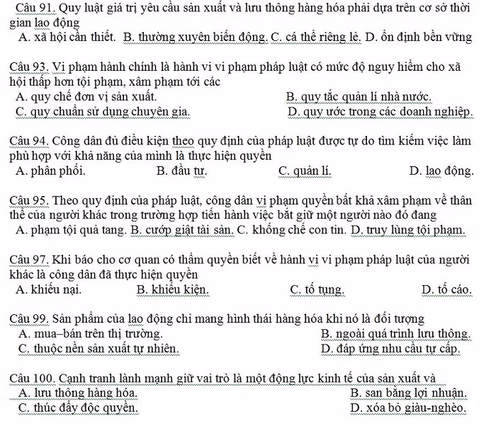 Còn đối với học sinh khá, giỏi cần phải nắm được bản chất của các vấn đề kiến thức, cùng với đó là phải biết phân tích, tổng hợp và vận dụng kiến thức vào thực tiễn thì mới có thể đạt được điểm tối đa.