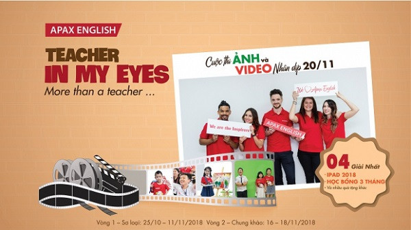 Và trong dịp lễ đặc biệt dành cho những người thầy, Apax English trân trọng tổ chức cuộc thi “TEACHER IN MY EYES” với nhiều giải thưởng hấp dẫn, trị giá lên tới 100 triệu đồng.