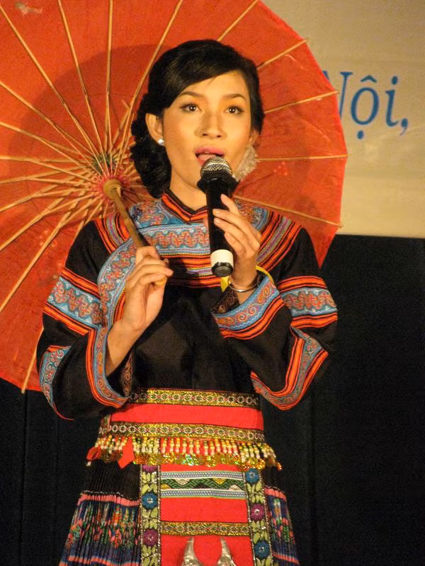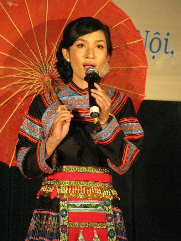 | Nguyễn Thị Minh Mùi trong phần thi năng khiếu trong trang phục người dân tộc và trong trang phục tự chọn. |