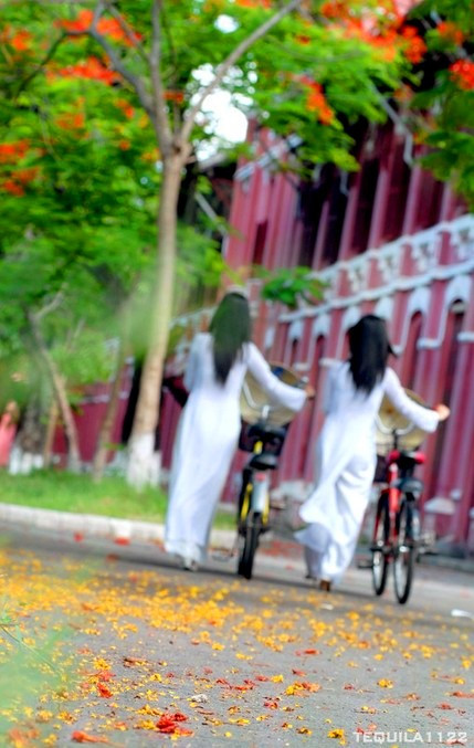 | Từ lâu, hình ảnh thiếu nữ Huế trong tà áo dài trắng đến trường đã trở thành một biểu tượng của xứ Huế mộng mơ. |