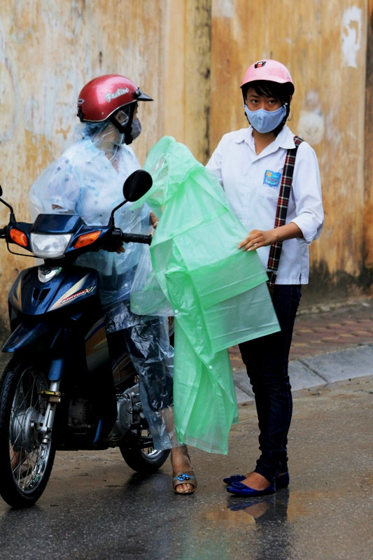 | Sáng nay khu vực Cầu Diễn – huyện Từ Liêm có mưa nhỏ, các thí sinh được người nhà đưa đón sớm tới địa điểm thi. |