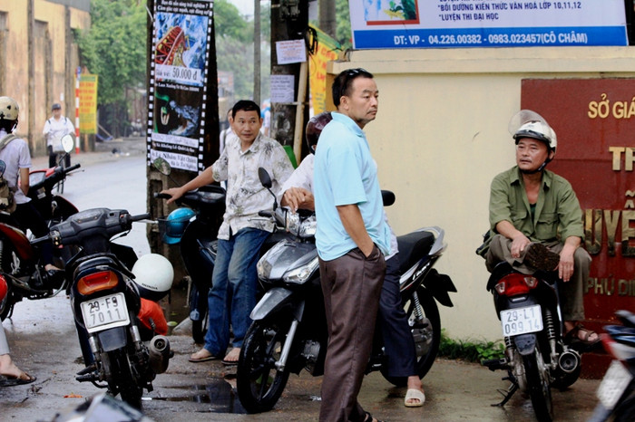 | Ngay từ sáng sớm đông đảo phụ huynh đã có mặt tại địa điểm thi cùng sĩ tử. |
