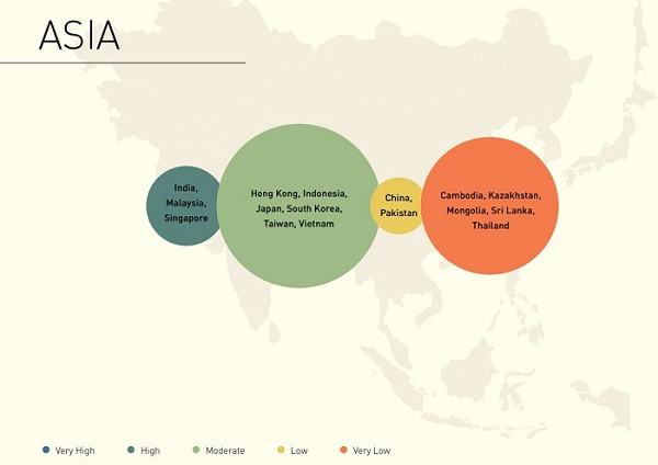 Điểm trung bình của bài thi TOEFL và IELTS tại một vài quốc gia và vùng lãnh thổ Châu Á theo khảo sát mới nhất của EF Education First: