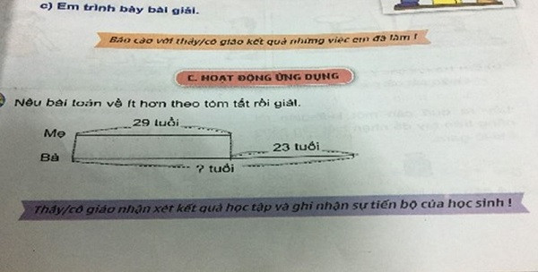 Thế nhưng đề bài lại cho mẹ 29 tuổi, bà nhiều mẹ 23 tuổi. Hỏi bà bao nhiêu tuổi?