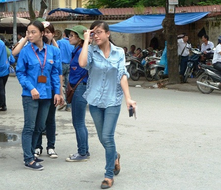 Tại điểm thi ĐH Thủy Lợi, ĐH Khoa học Tự nhiên có một vài thí sinh đến sau 13h15 phút. Tuy nhiên, không có bất cứ thí sinh nào bị muộn thi. Chiều nay không khí khá nóng bức cũng đã ảnh hưởng một phần đến sức khỏe, tâm lý của các thí sinh.