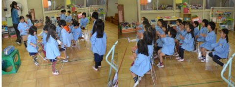 Tôi thấy một cô giáo đang chơi đàn, một vài bé đã ngồi sẵn trong lớp và ngân nga hát. Thật bất ngờ, các bé đang chơi ở ngoài sân cũng dừng lại và chạy về lớp học, chỉ sau một vài phút, các bé đã tập trung đầy đủ trong lớp và cùng hát vang những bản nhạc cô giáo chơi (cũng thật lạ khi không bé nào hát sai nhạc, điều mà tôi đã tập luyện rất nhiều nhưng vẫn chưa làm được).