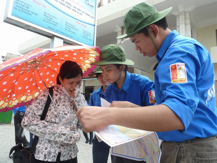 | Tại bến xe Giáp Bát (Giải Phóng, Hà Nội), hơn 150 bạn tình nguyện viên của 32 đội thanh niên, sinh viên tình nguyện của các trường, các hội đồng hương như trường Đại học Y Hà Nội, Đại học Công Đoàn, Học viện Báo chí tuyên truyền, Đội Sông Mã, Hội đồng hương Nam Định… đã tỏa ra khắp hướng để hỗ trợ, giúp đỡ, tư vấn cho các thí sinh và người nhà thí sinh lên Hà Nội thi đại học. |