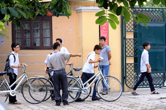 | Nhưng phần lớn các em học sinh lớp 9 tự túc bằng xe đạp tới địa điểm thi sáng nay. |