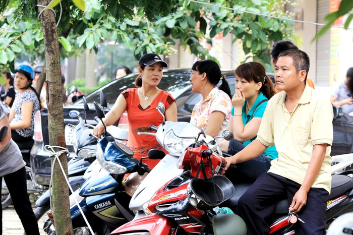| Ngoài cổng, phụ huynh đứng ngồi không yên |