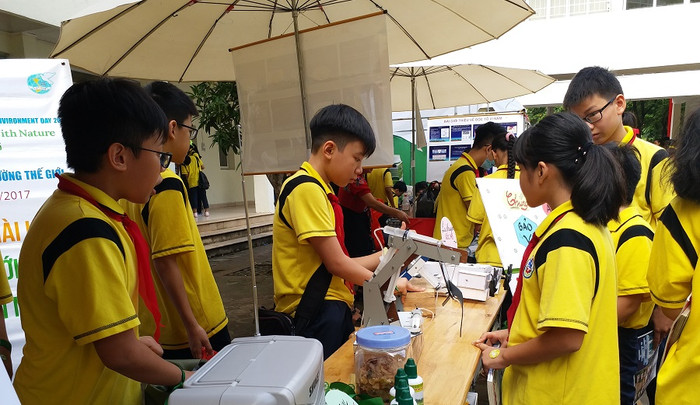 | Không chỉ yêu thích khoa học và đam mê đọc sách, các học sinh còn gửi thông điệp yêu thương môi trường. Bảo vệ môi trường chính là bảo vệ sự sống, bảo vệ tương lai của đất nước. ảnh: Ngọc Quang. |