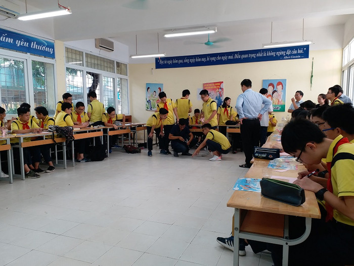 | Trong ngày hội Stem-Sách thì cuộc thi giải Toán bao giờ cũng là một phần thi thu hút rất nhiều học sinh tham gia. Trường Trung học Cơ sở Giảng là nơi đã có hàng nghìn giải thưởng từ các cuộc thi cấp Quận, Thành phố, Quốc gia và Quốc tế. ảnh: Ngọc Quang. |