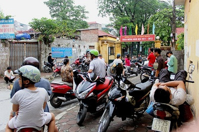 | Ngoài cổng, luôn có những phụ huynh đứng ngồi không yên |