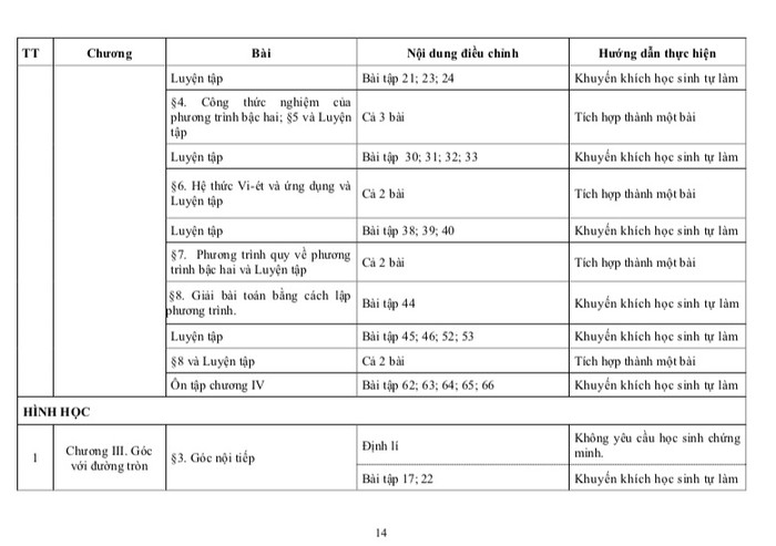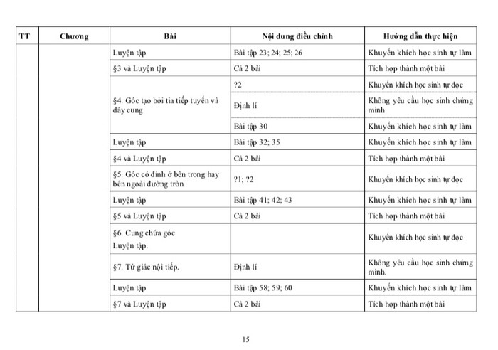 Một số phần điều chỉnh thành khuyến khích học sinh tự học ví dụ như Cung chứa góc thì xác suất thi vào sẽ thấp hơn, thí sinh có thể học nhanh qua phần này. Tuy nhiên những bạn nào muốn được điểm cao thì cũng phải học kĩ và sâu, bởi những bài nâng cao thì việc thi vào là bình thường như những phần khác.