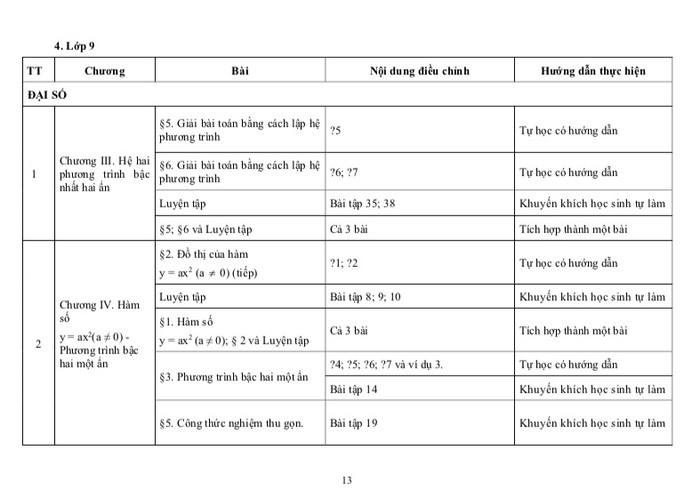 Sau đây là hướng dẫn giảm tải môn Toán lớp 9 của Bộ Giáo dục và Đào tạo: