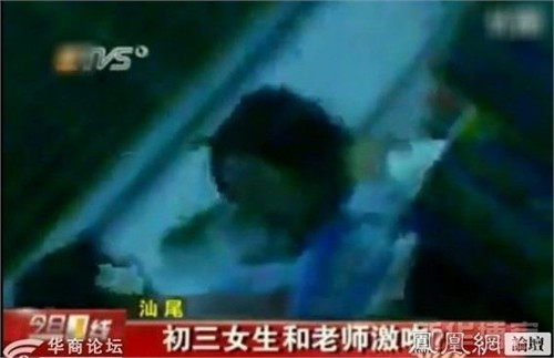 Sự việc xảy ra tại một trường trung học thuộc tỉnh Quảng Đông, Trung Quốc và đã được quay video, khi nhiều học sinh đi ngang qua văn phòng nhà trường phát hiện ra.
