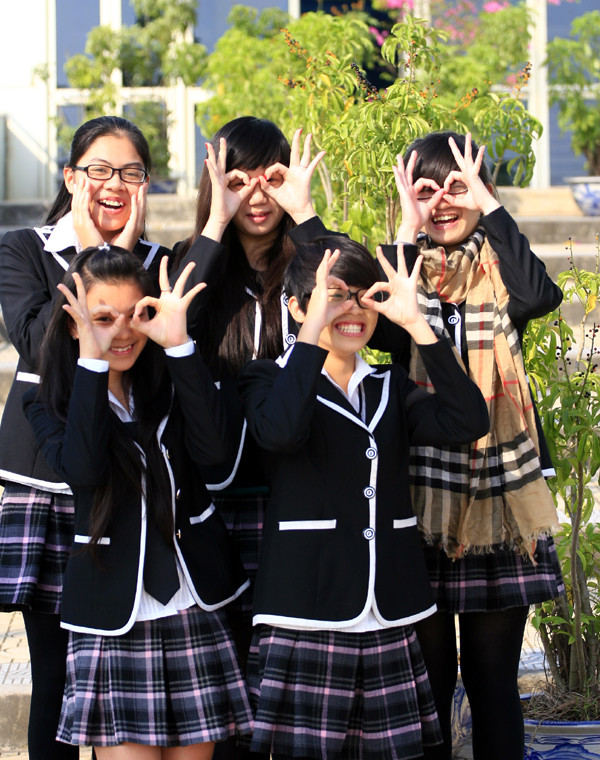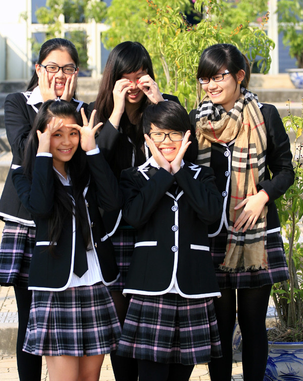 | Những phút giây nghịch ngợm bên bộ đồng phục được may theo kiểu Hàn quốc của các bạn nữ sinh |